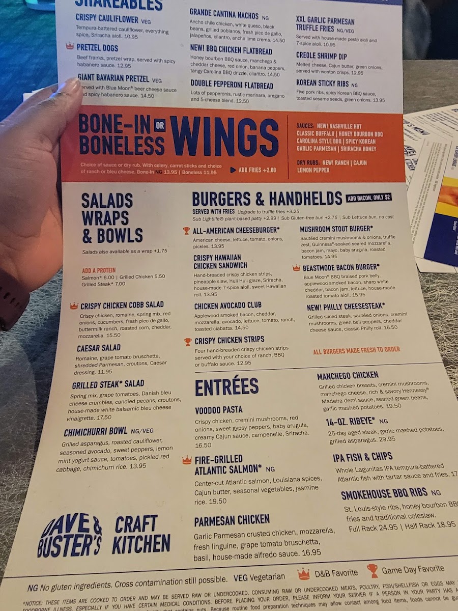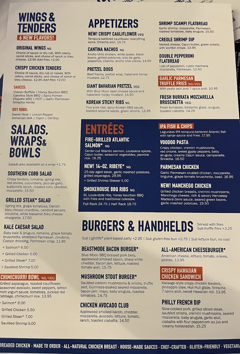 Regular or boneless buffalo wings with your choice or ranch or bleu cheese dressing!